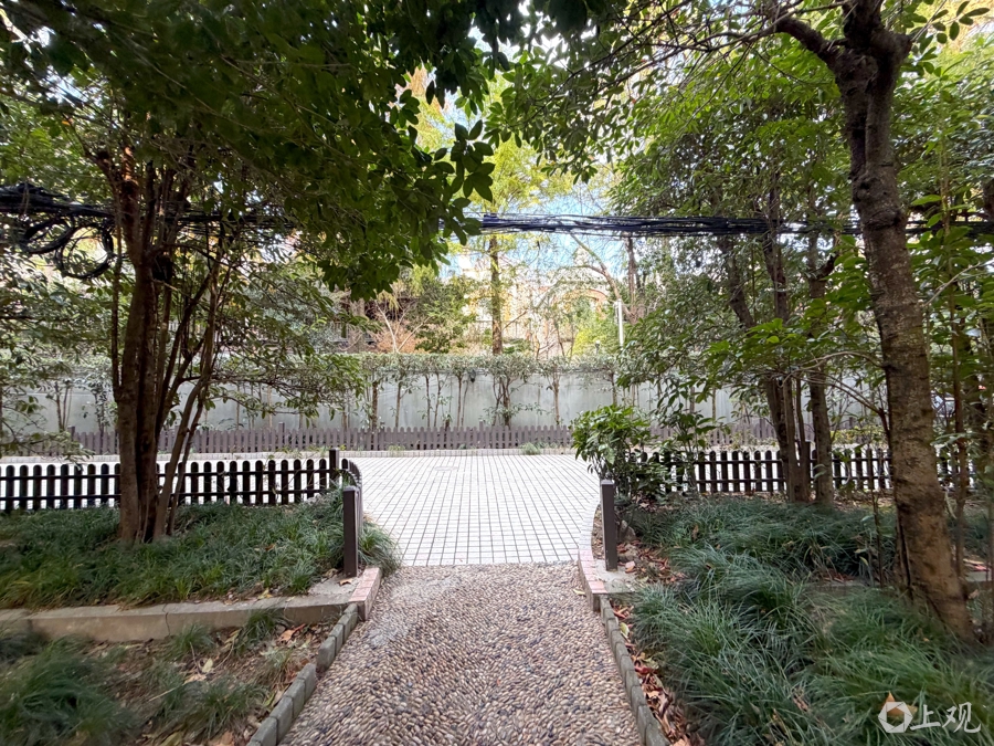 武康路106弄是典型的售后房及公房混合小区,居民67户,总建筑面积为5249平方米,居民以活力老人为主。小区面积不大,穿过公共通道,一座精巧的花园映入眼帘,与高大的香樟树组成了一片静谧的小森林。树木与居民楼的间隙中,通过“美丽家园”项目更换的金属晾晒衣架,为这个幽静的老小区平添了不少烟火气。